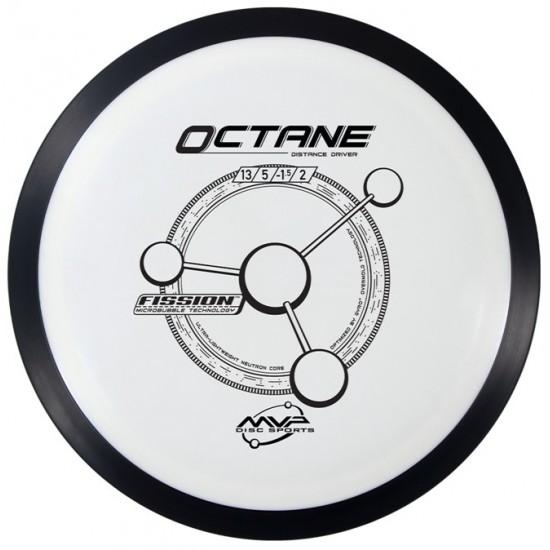 The MVP Fission Octane is a high speed stable to understable distance driver. The 23 mm Class Octane falls in the general stability lineage of Switch, Amp, Inertia, and Wave, with a slow-turning profile that holds long and straight until its fade finish. It is designed to be relatively less understable than its 21.5mm counterpart Wave.